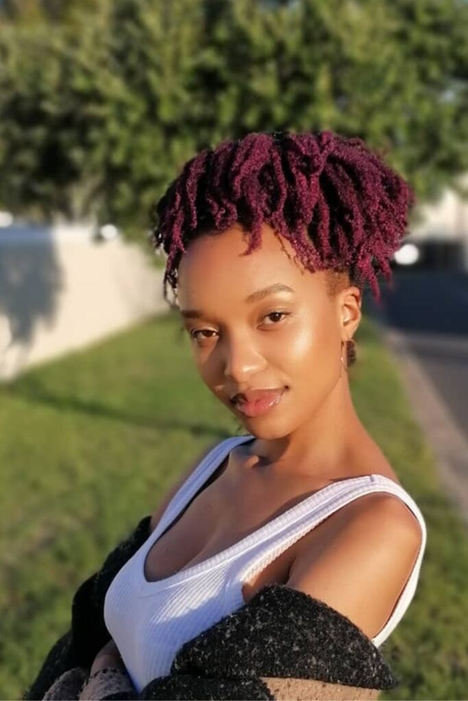 The thirteenth hairstyle showcases Vibrant Twists in a stunning purple hue, adding a pop of color that turns heads.