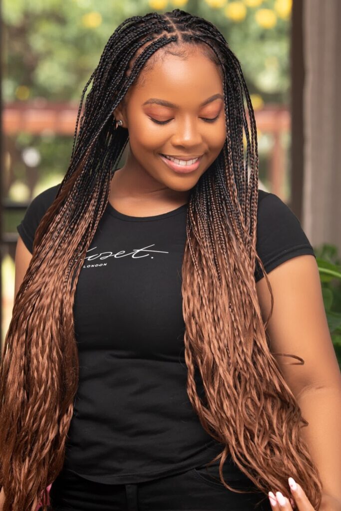 The twenty-first style, Ombre Braids, presents a stunning blend of natural tones transitioning into lighter hues, adding dimension and style.