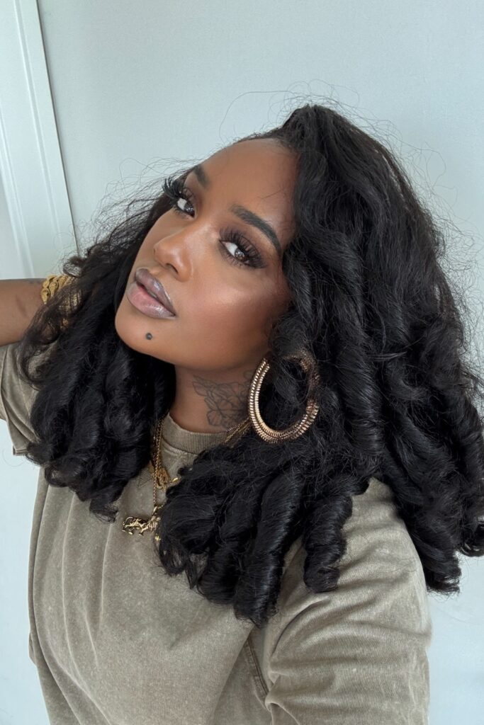 This style is particularly great for those looking to protect their natural hair while enjoying a curly, voluminous look that is both stylish and functional.