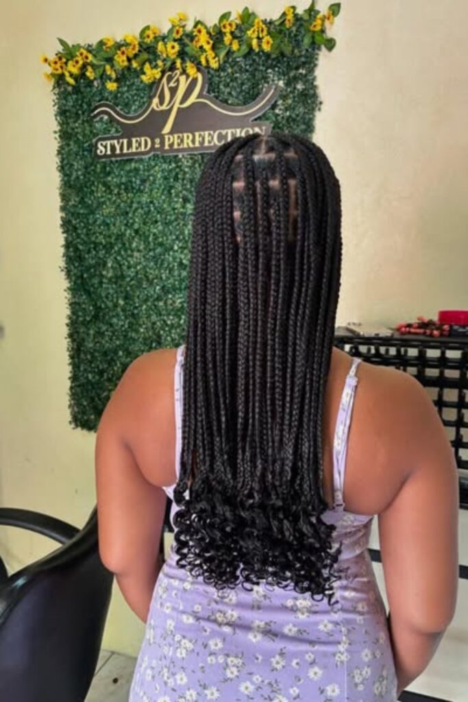Cascading Micro Braids feature finely braided strands that transition into bouncy curls at the ends, blending a traditional braided style with a playful, youthful vibe.
