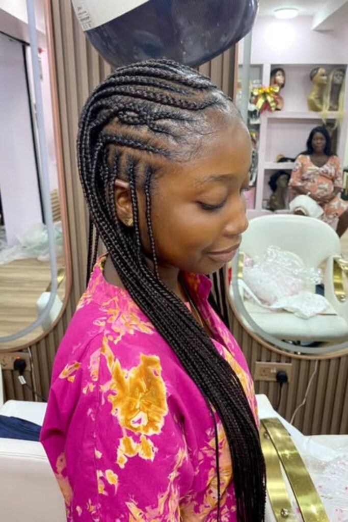 Classic Side Braids are all about timeless charm with a modern twist, featuring smooth, neat cornrows that sweep sideways across the head.