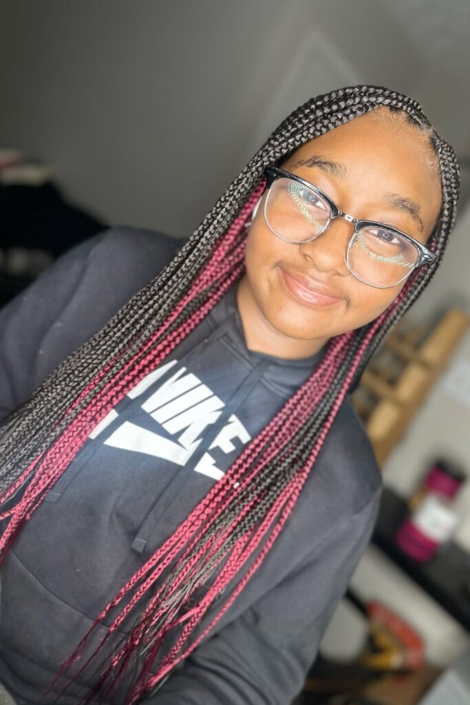 This hairstyle is ideal for those who appreciate a dramatic, eye-catching look that blends traditional braiding with contemporary coloring techniques.