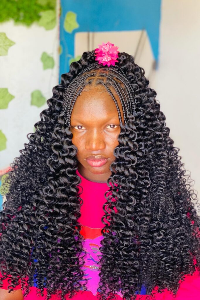 This hairstyle is fantastic for those wanting to express their personality through their hair, with curls that make a statement and braids that keep everything neat.