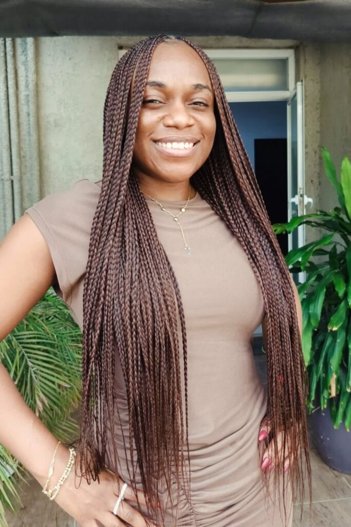 Sleek Long Braids offer a classic and polished look with straight, long braids that highlight meticulous craftsmanship.