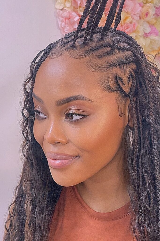 This style is ideal for those who want to showcase their hair’s fullness while keeping it fashionably tamed with braids at the scalp.