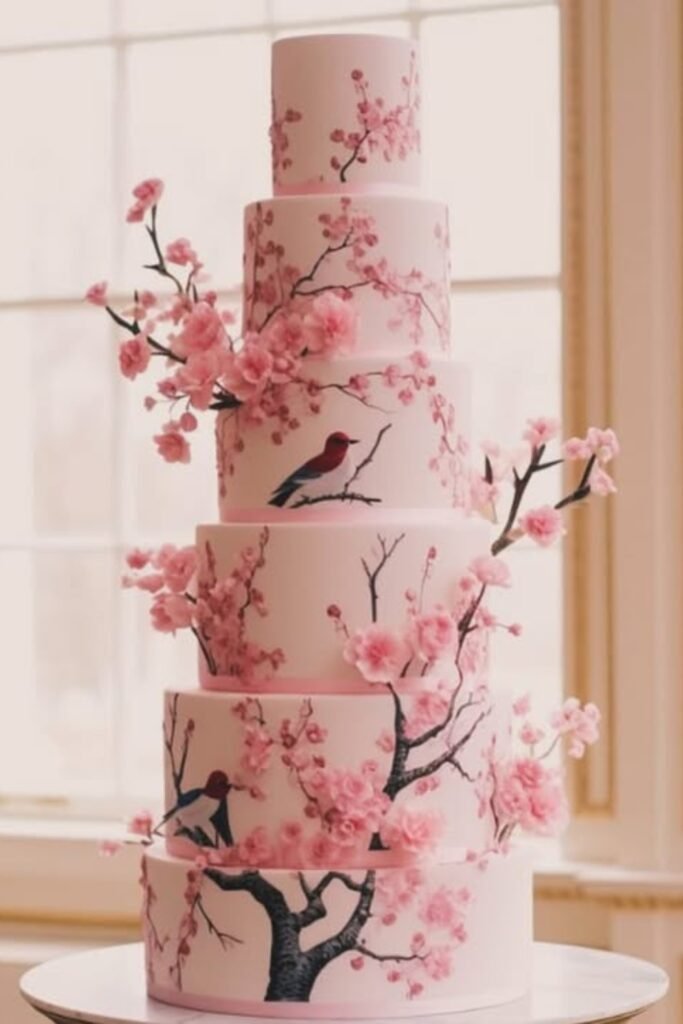 Keep the cake display simple so the artistry feels intentional and elegant rather than competing with surrounding decor elements.