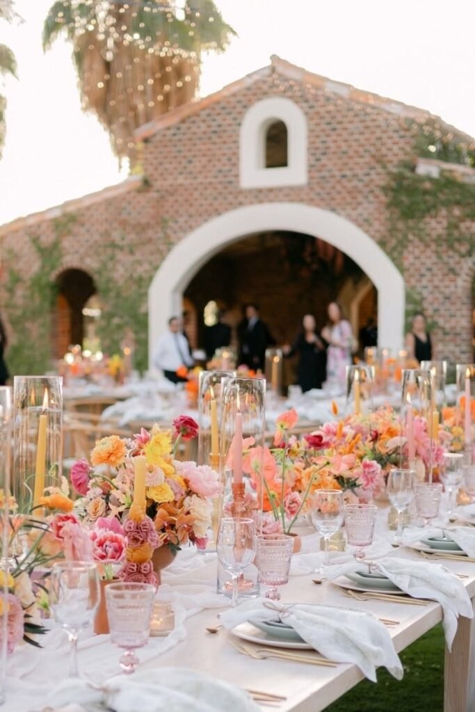 Pick one or two statement areas, like the ceremony florals or reception tables, and let pink shine there. Everywhere else should support it, not compete with it.