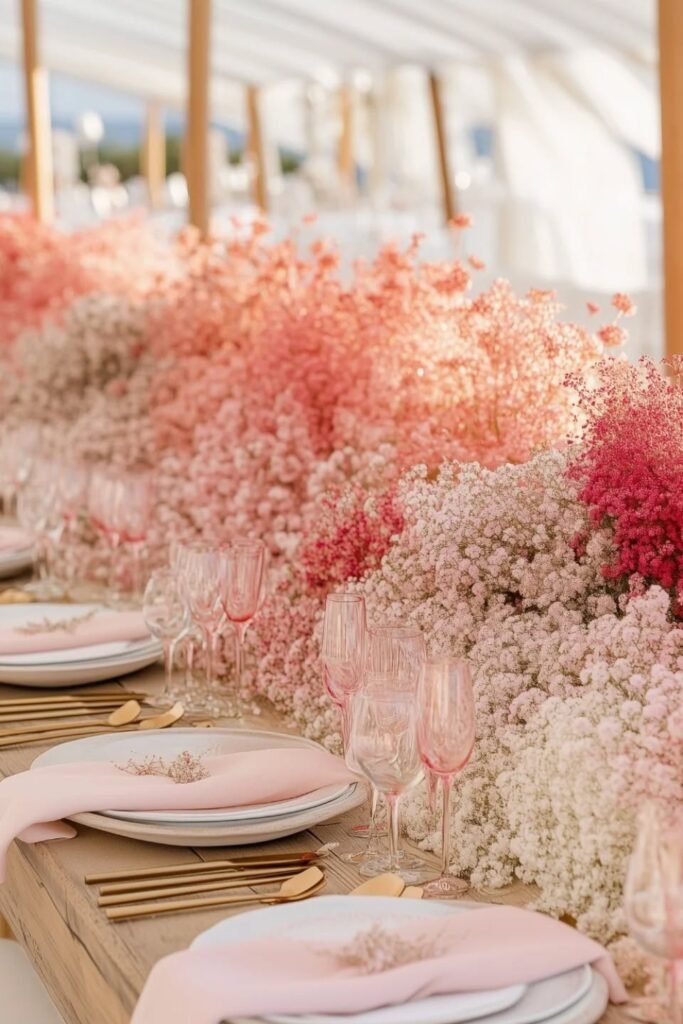 This style is perfect for long tables where repetition helps pink feel intentional and calming instead of chaotic for guests seated.