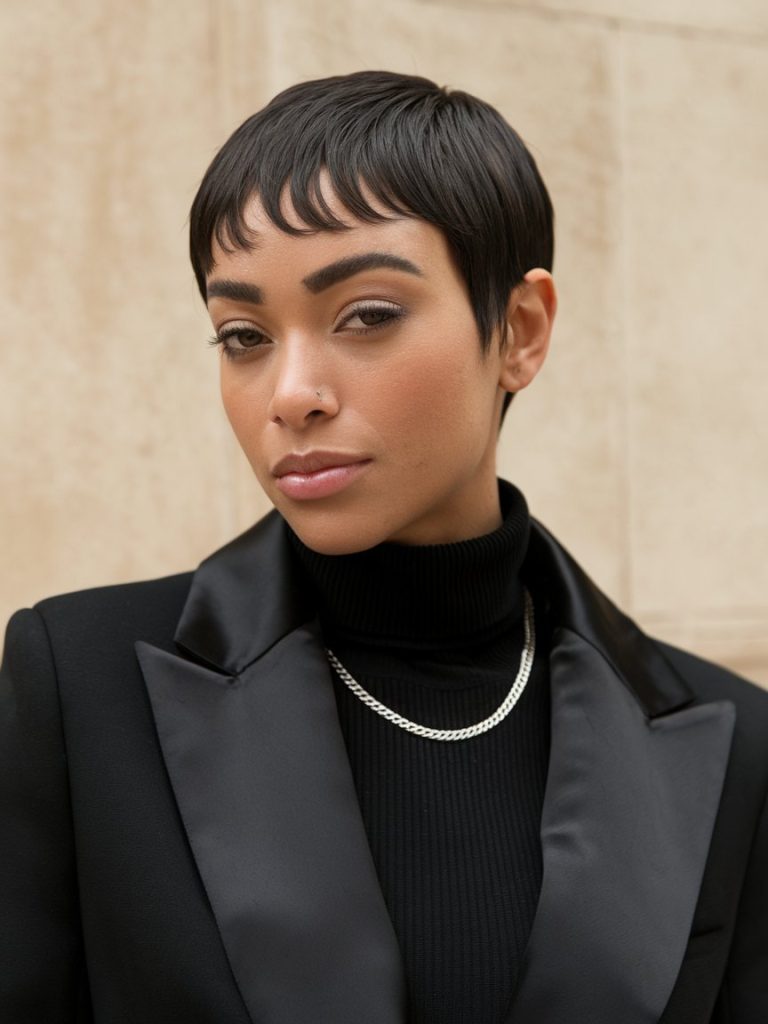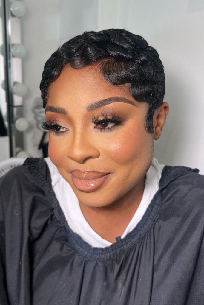Pixie cut not only showcases beautiful features but also offers an easy-to-manage option for those on the go.