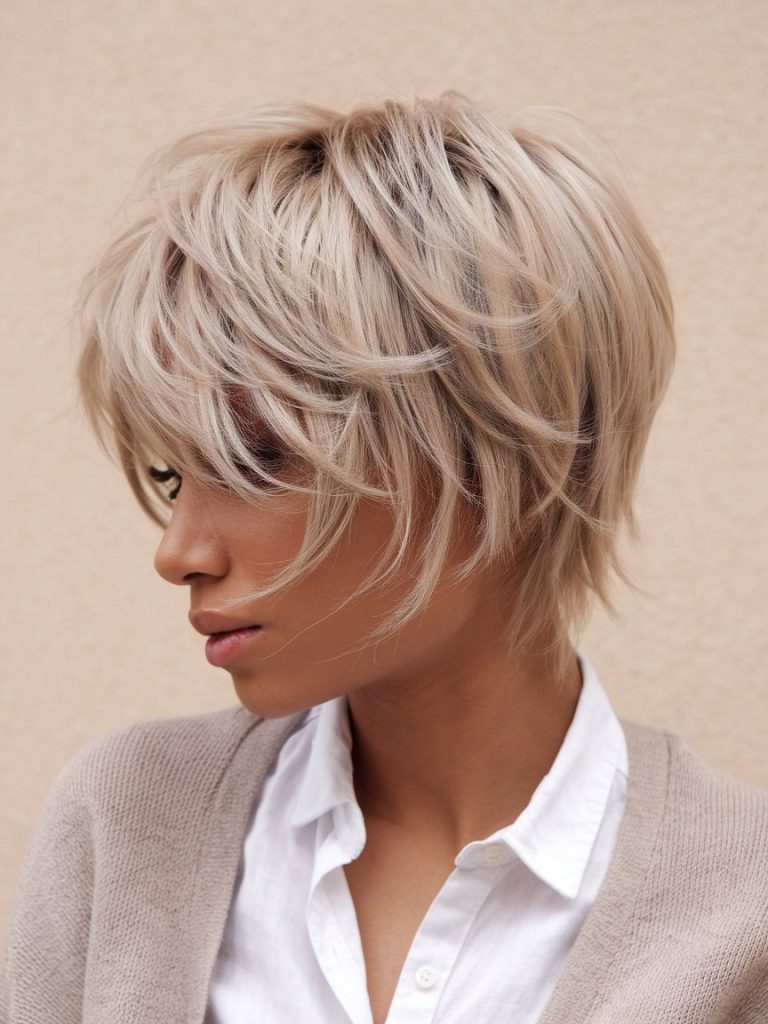 A platinum pixie cut is a daring and elegant hairstyle choice. By bleaching the hair to a platinum blonde, you achieve a stunning contrast with the short length, making it a standout look.
