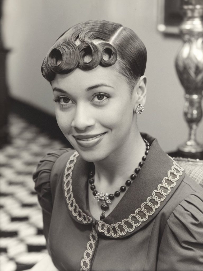 This style showcases tightly coiled finger waves, carefully crafted close to the scalp for a smooth, wave-like pattern.