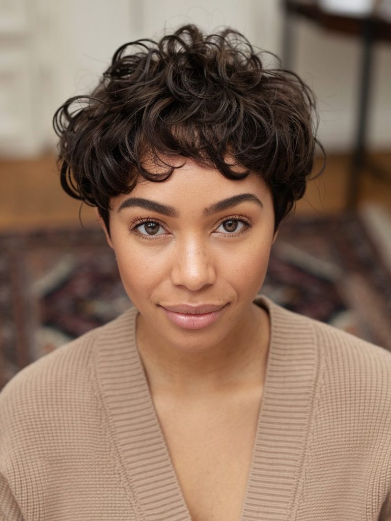 14. Curly Pixie with Bangs