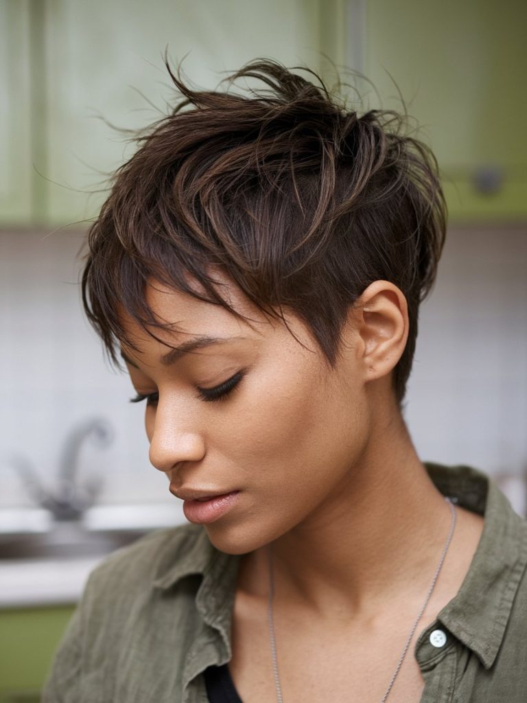 A tousled pixie cut offers a laid-back and effortless style. With short hair and textured layers, it creates a deliberately messy and undone appearance.