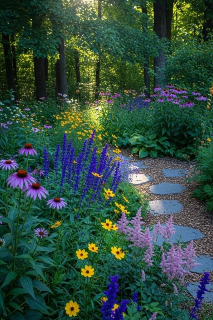 Partial shade forced me to stop fighting my yard. I planted pollinator flowers along the edge where sun meets shade.