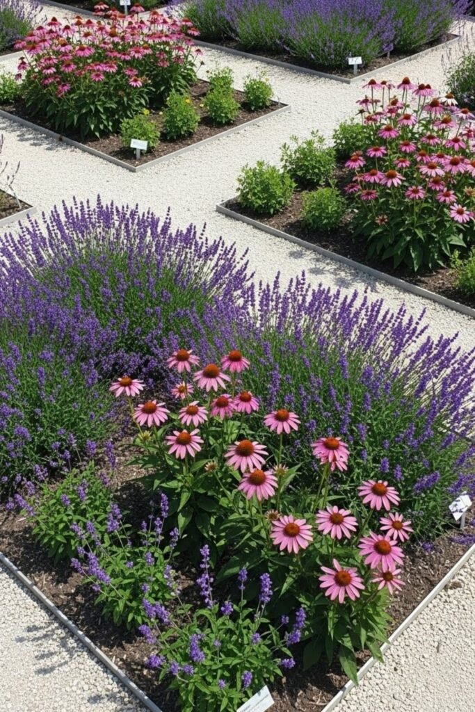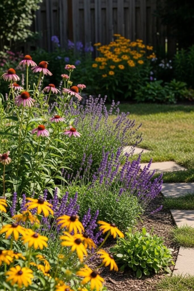 Taller plants go in back, shorter ones in front, keeping everything tidy while still feeding bees and butterflies without crowding the rest of the garden.