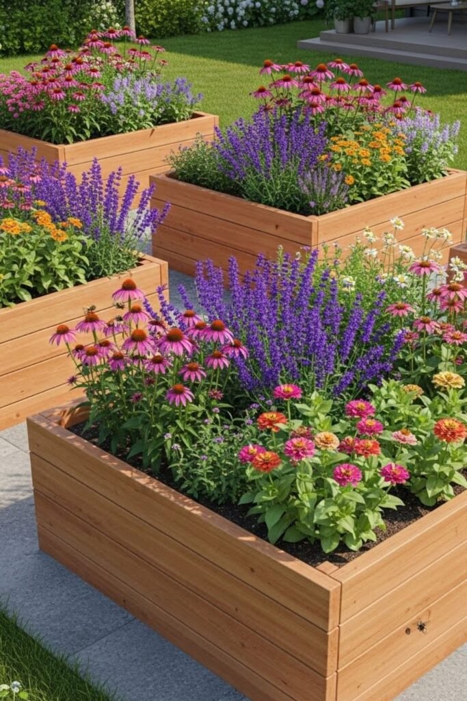 Raised beds make gardening enjoyable again. Pollinators don’t care about height, but your back definitely will.