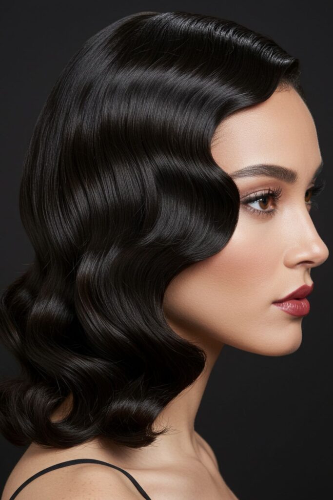 Transform your tresses with sleek, deep waves that bring timeless vintage charm to your look.