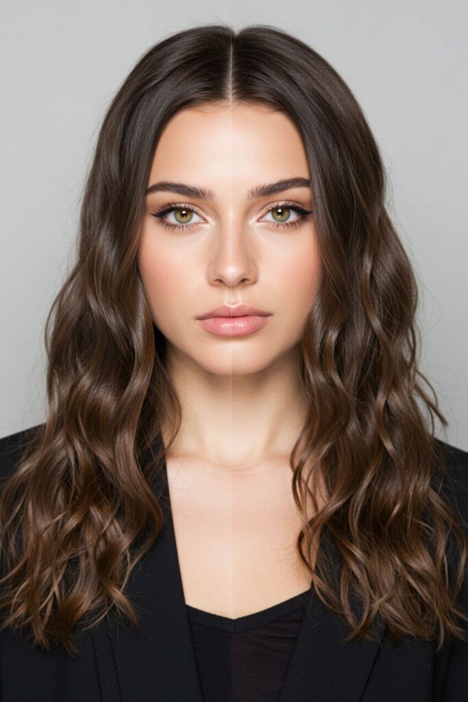 Use a curling iron to create polished waves, then comb through gently for a structured flow.