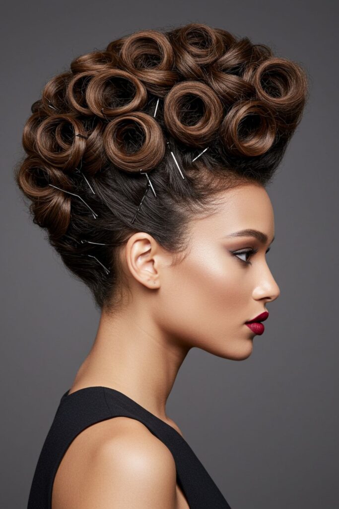 This hairstyle masterfully combines vintage elegance with a modern twist, giving you a bold, confident, and effortlessly chic look.