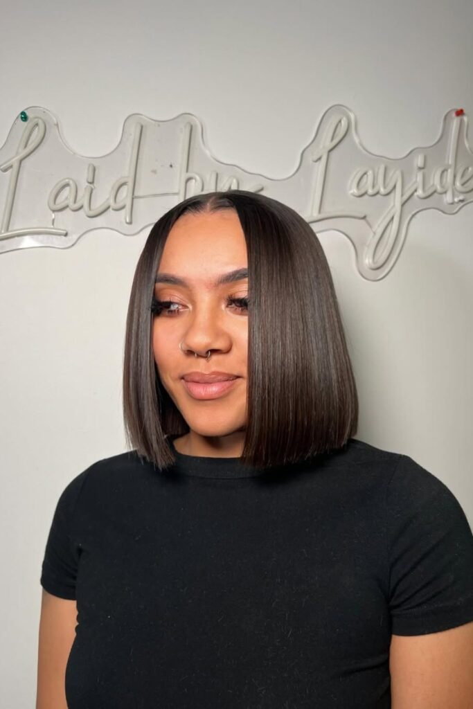 Chic Contrast combines straight, polished hair with a blunt cut, giving it a fresh, modern vibe.