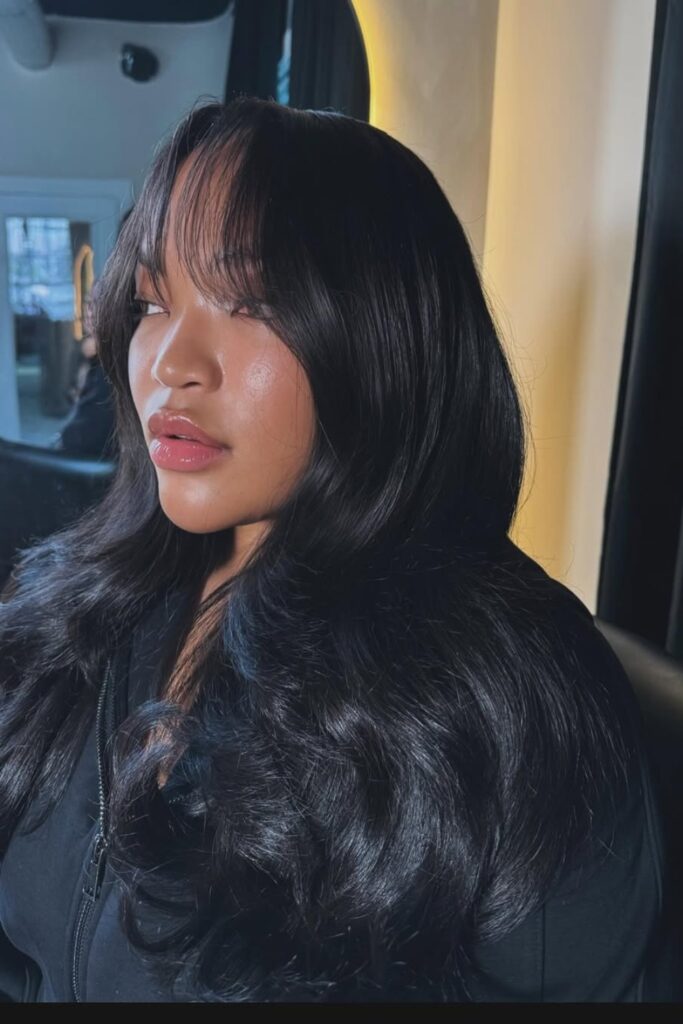 This style is perfect for those wanting a sophisticated, flowing hairstyle that frames the face beautifully.