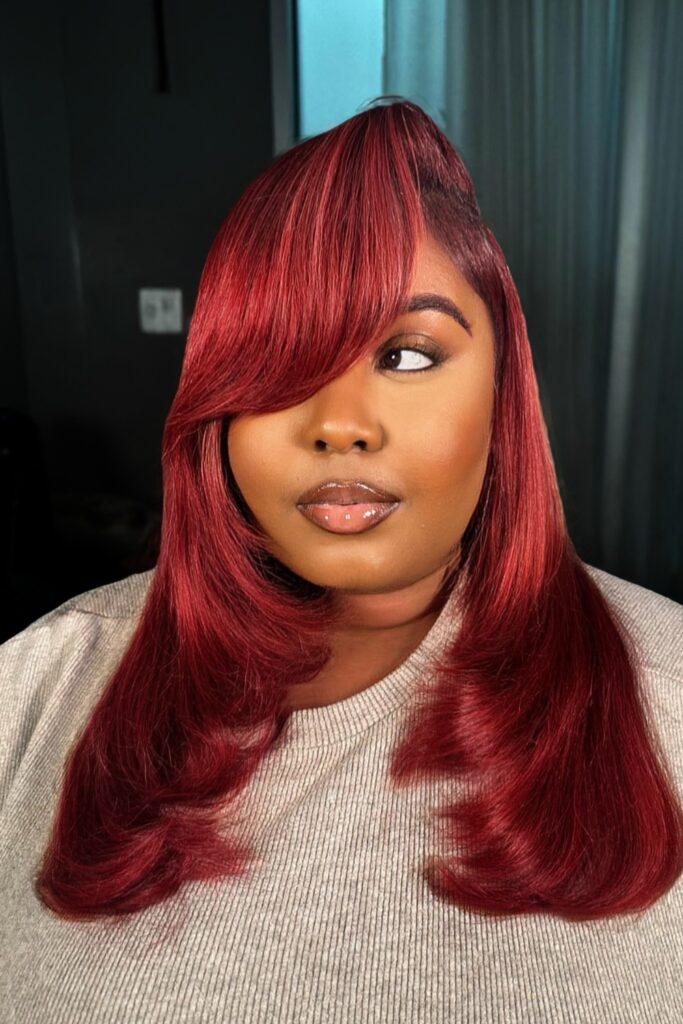 This style is perfect for those who want to make a bold statement with their hair, offering a striking color that’s both alluring and unforgettable.