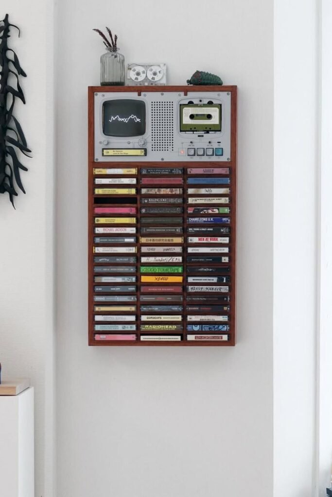 Music doesn’t have to hide inside an app. A cassette wall like this turns listening into a visual habit, not a background task.