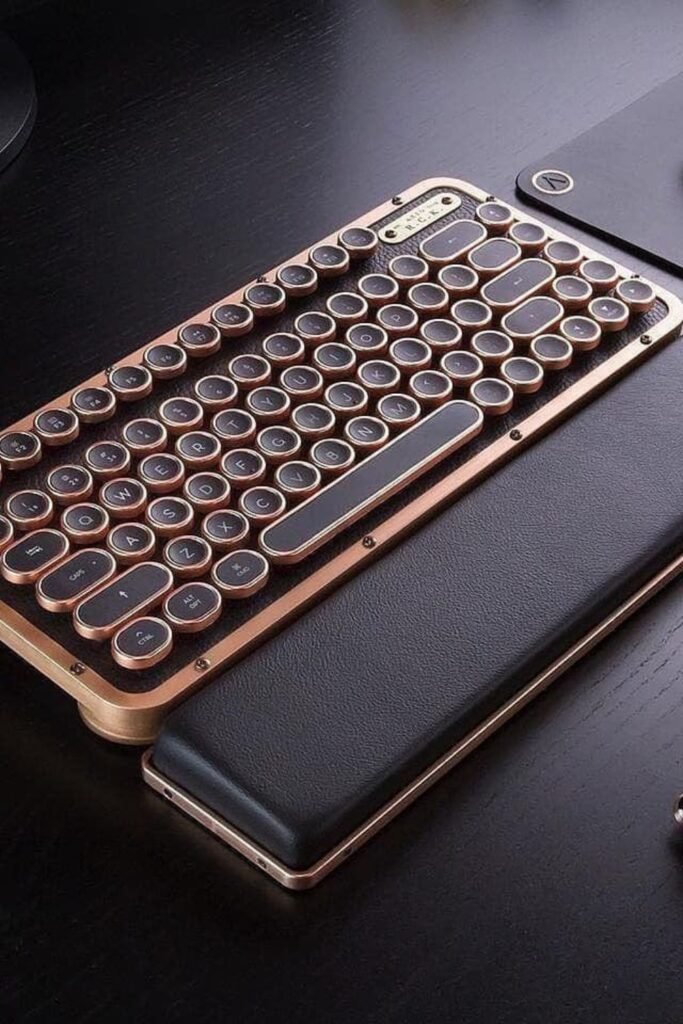 Typing feels heavier when every word makes a sound. A mechanical keyboard built like a typewriter works best for desks.