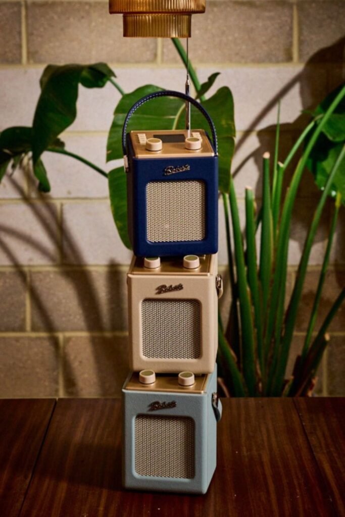 Sound feels more intentional when you have to reach out and touch it. A compact retro-style radio like this fits.