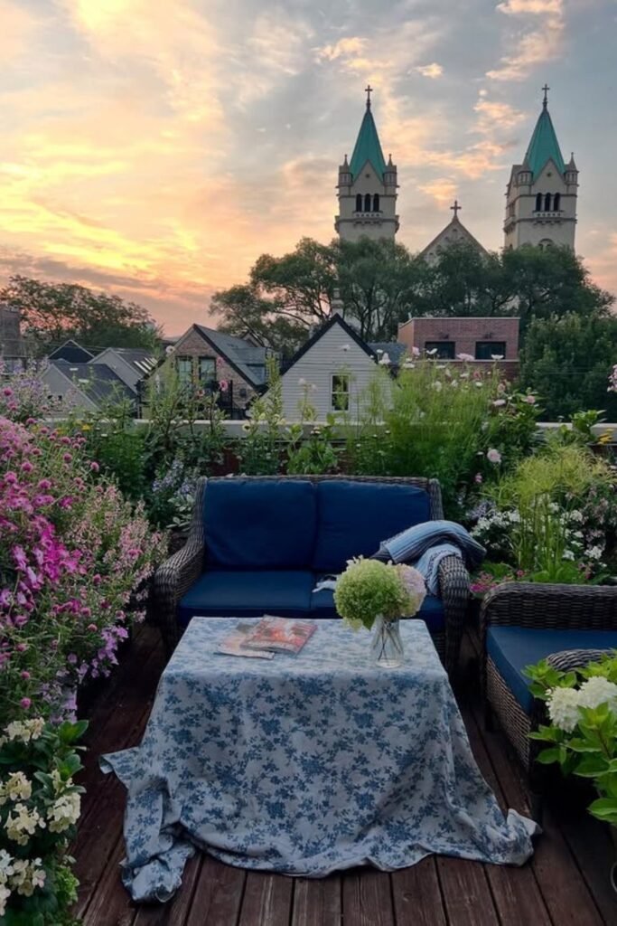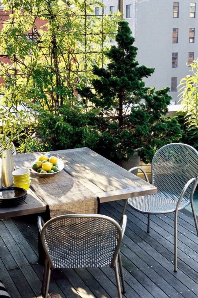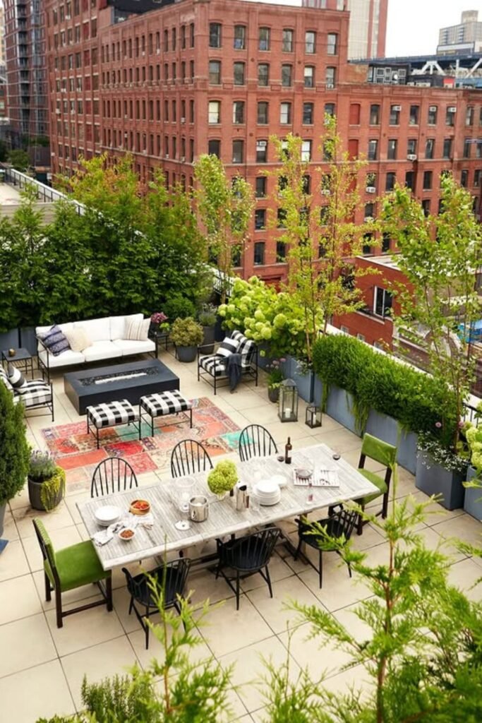 And soften city noise at the same time. This setup works best for rooftops used for family meals or hosting guests.