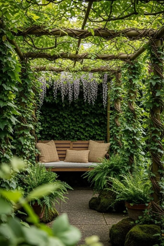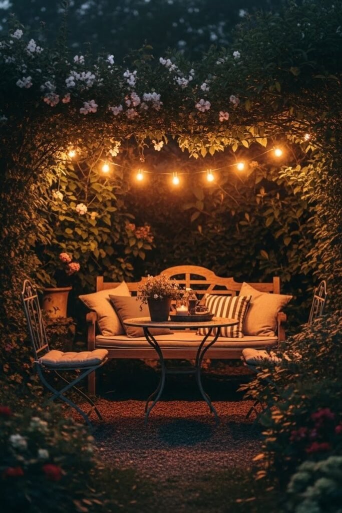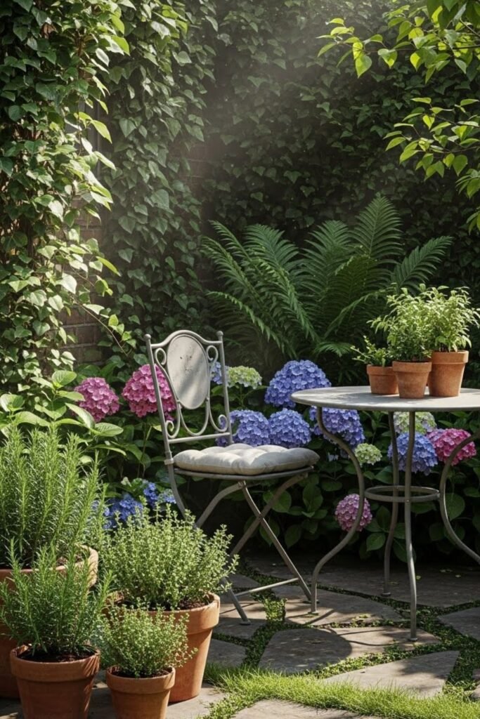 Once you feel hidden, the space instantly feels calmer. Next, shrink the focus. You don’t need the whole garden to feel secret. One corner is enough.