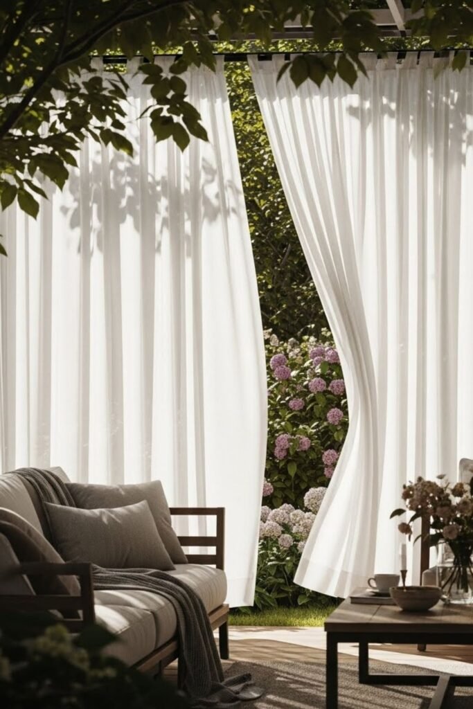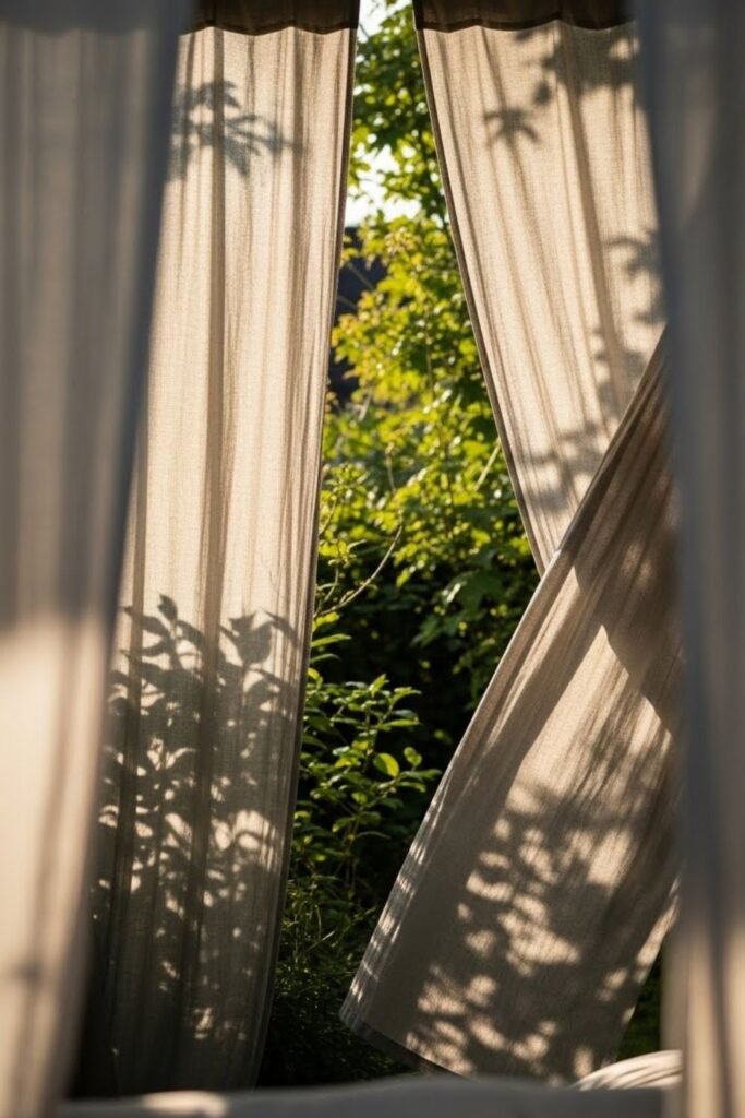 Privacy sometimes needs softness, so I hang outdoor curtains where walls would feel heavy. I decide the opening first, then frame it with fabric.