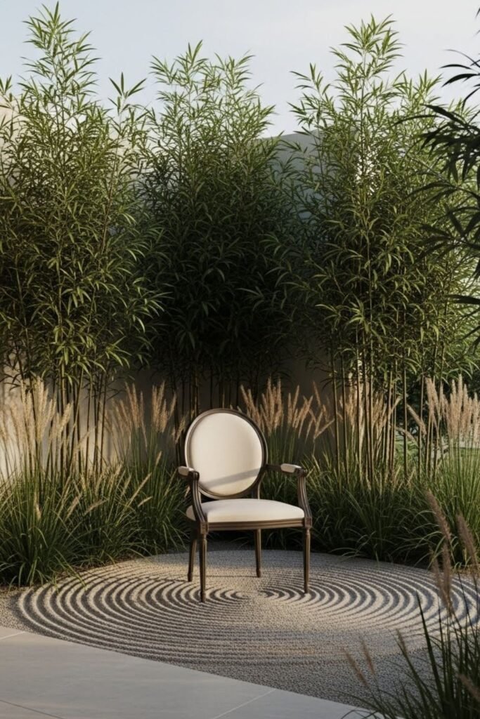 I don’t add extra furniture because it breaks the focus. This setup feels personal, like the garden exists just for one person and one moment of calm.