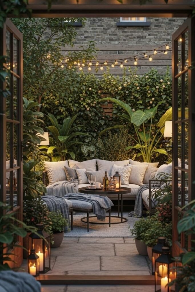 Even partial privacy using plants, screens, or fabric can create a hidden feeling. Once visual noise drops, the space feels personal, even if the garden isn’t fully enclosed.