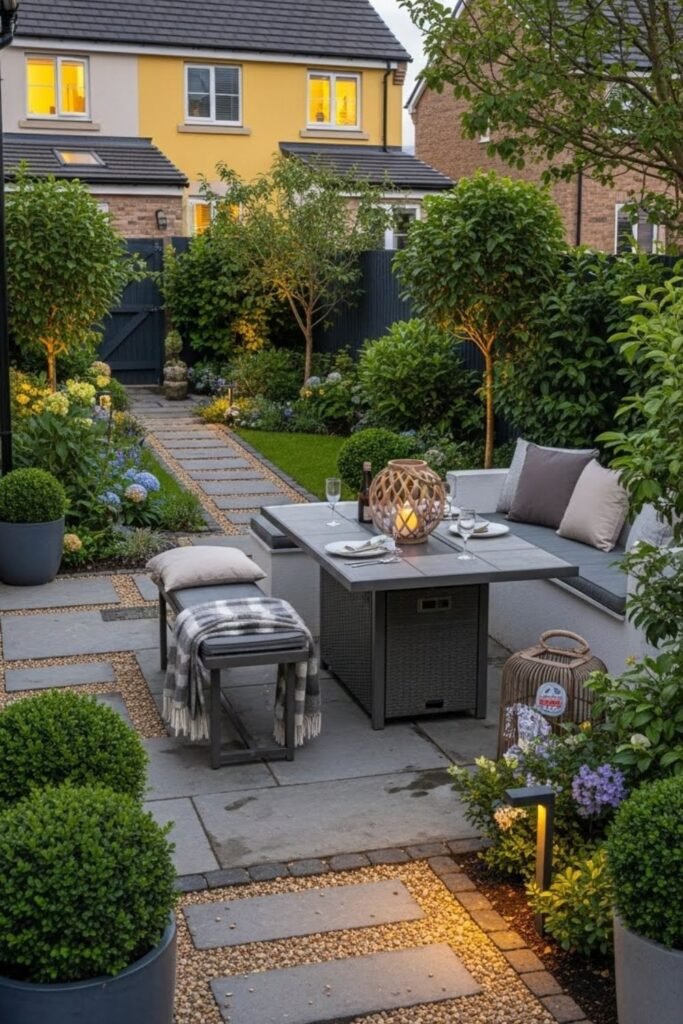 When lighting leads the experience, sitting outside feels intentional, relaxing, and possible even in very tight gardens for busy families after long days outdoors together.