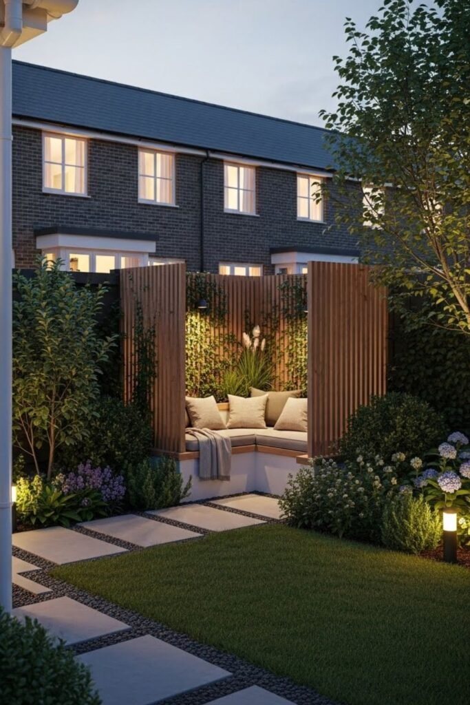 I treat shade as a feature, not a problem, especially in small back gardens. Instead of fighting sunlight, I design seating where shade already falls.