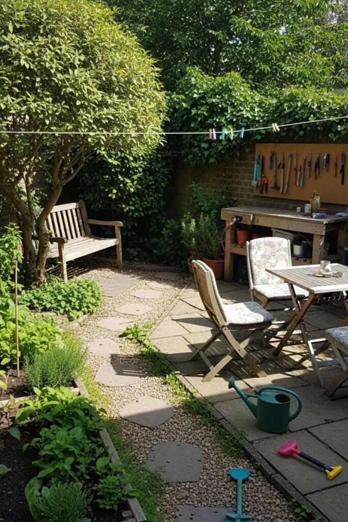 Nothing stays loose. When items disappear, the garden instantly feels calmer. Tools, toys, and cushions all get homes. Smart storage reduces stress and cleaning time.