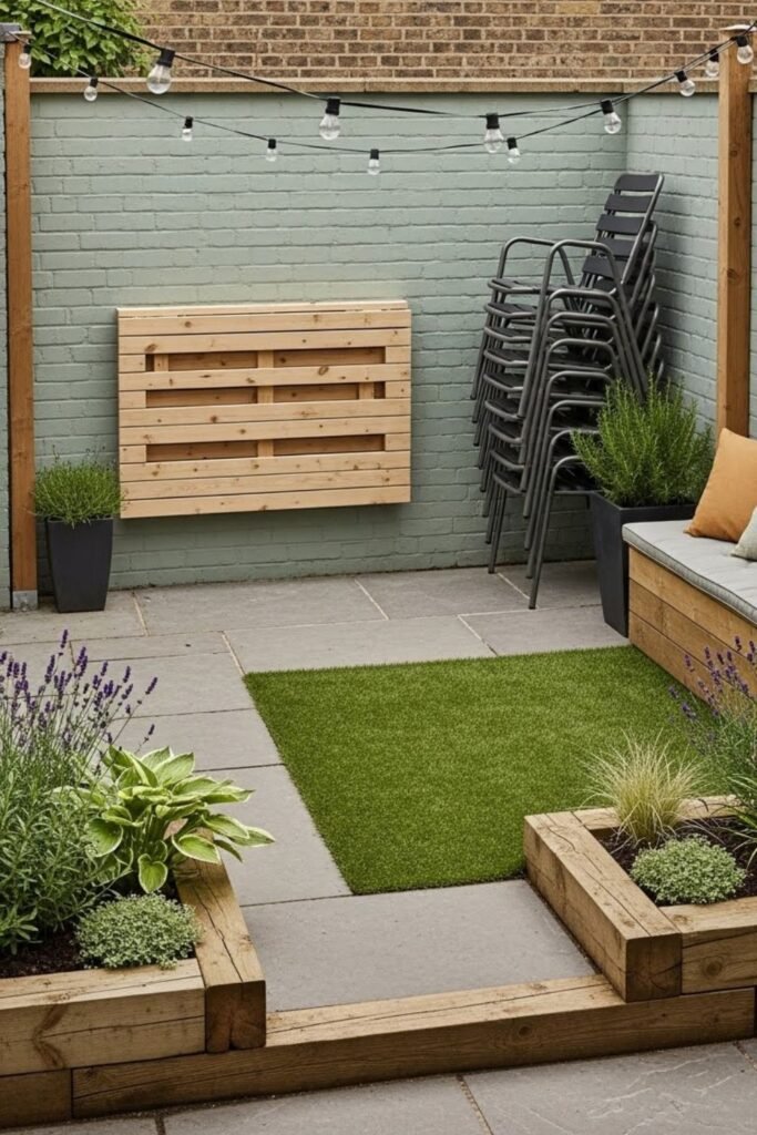 Use walls and fences for plants instead of the ground, and choose furniture that’s slim or foldable. When you simplify the layout, the space instantly feels calmer and larger.