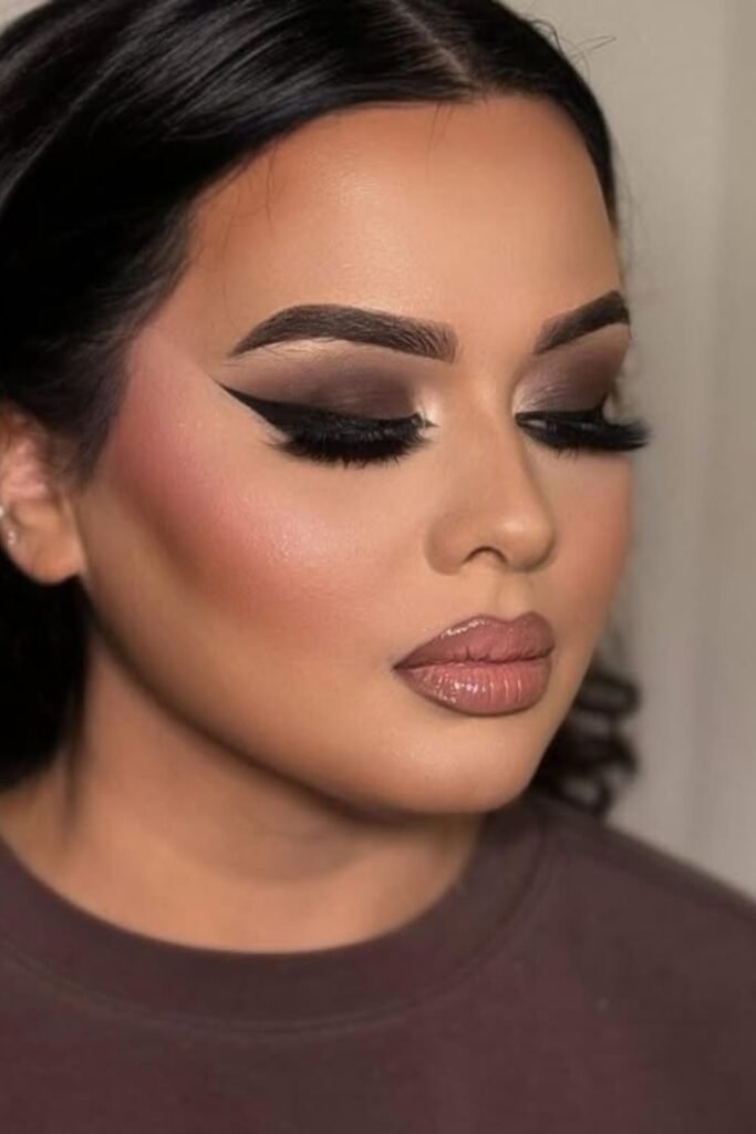 This look mixes a sharp cut crease with a bold wing for a dramatic and precise style. It is perfect for fancy events or when you want your eyes to really pop.