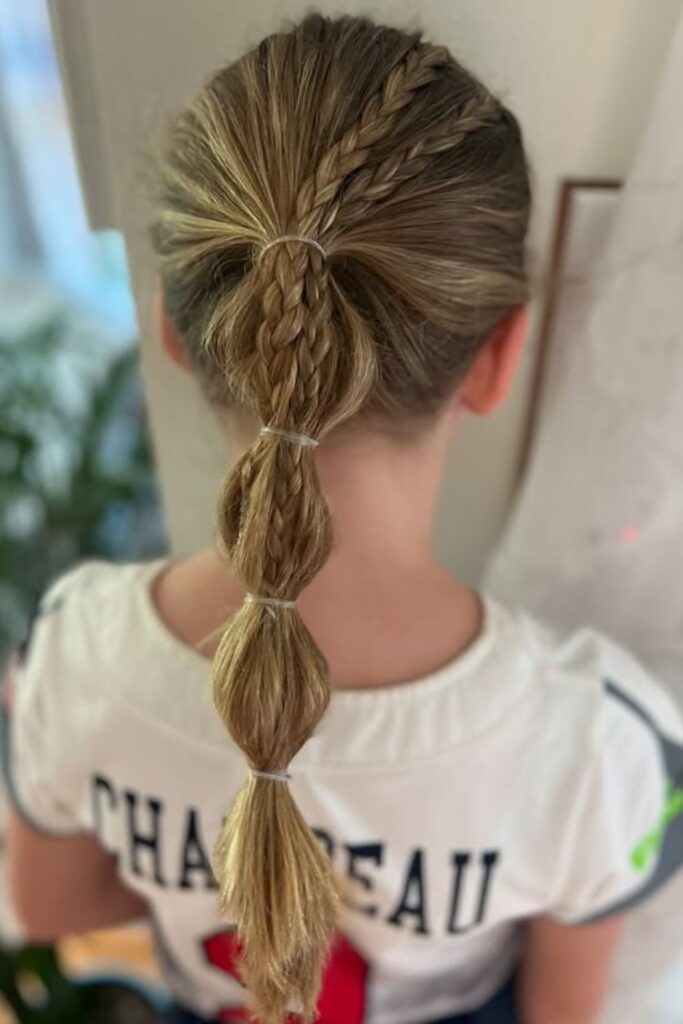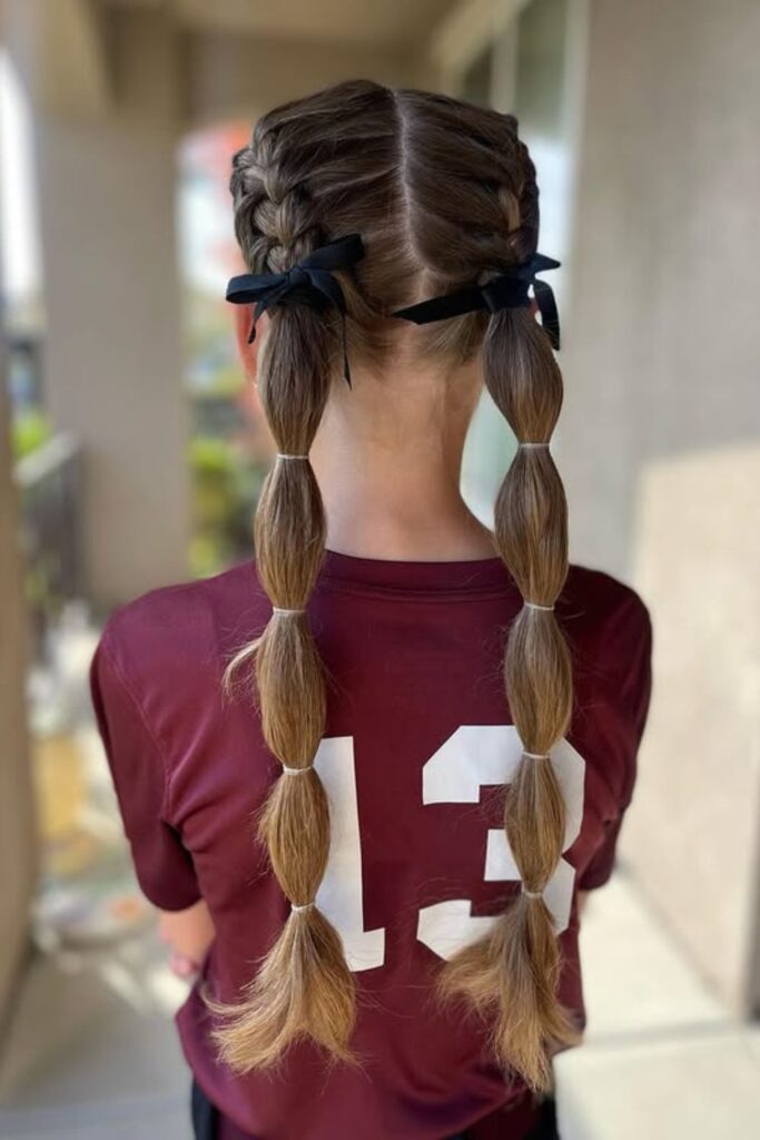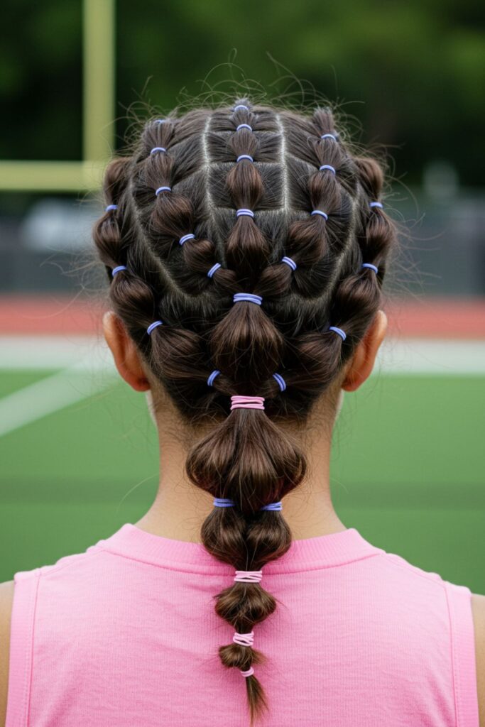 A sporty twist on classic braids, these bubble braid pigtails combine functionality with style.