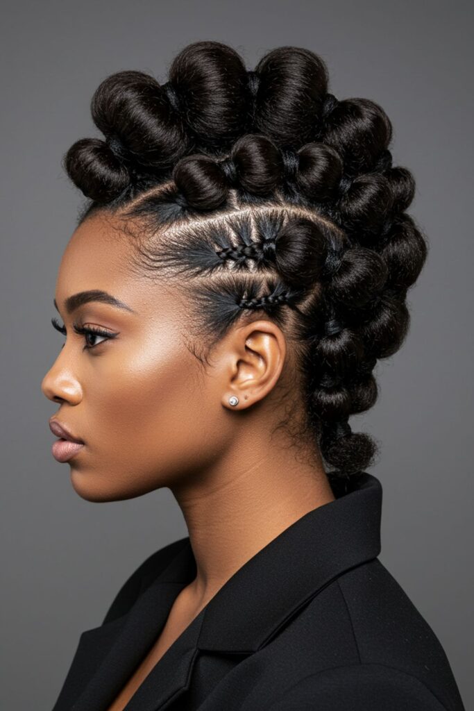 For those who love a fierce and edgy style, this bubble braid mohawk is the ultimate statement.