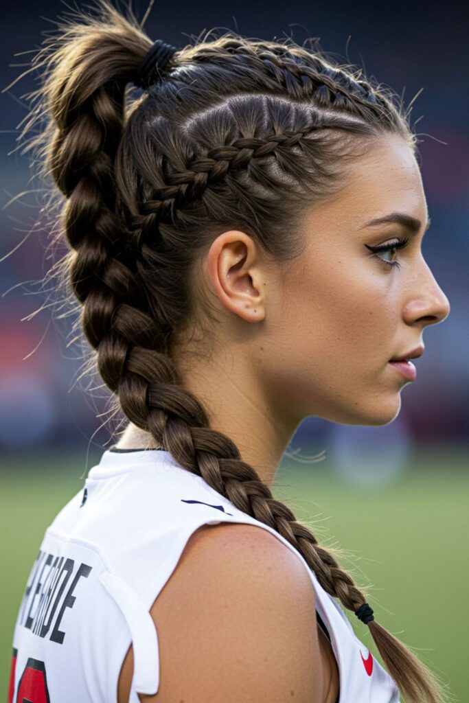The thick, even plaits ensure a strong hold, preventing hair from coming undone while adding a touch of flair to the game-day look.
