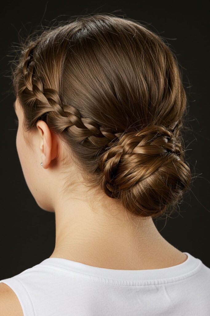 For players who prefer a sleek yet sporty updo, the side braid into a low bun is a perfect blend of elegance and practicality.