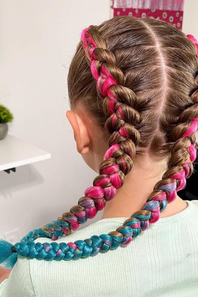 Nothing screams bold and fun like these Dutch braids infused with bright pink and blue extensions.