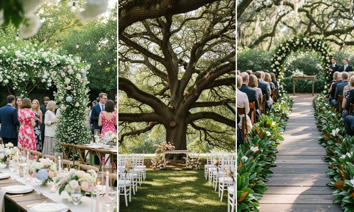 If you want instant southern charm, start with one strong oak tree and design the entire ceremony layout around its natural presence.