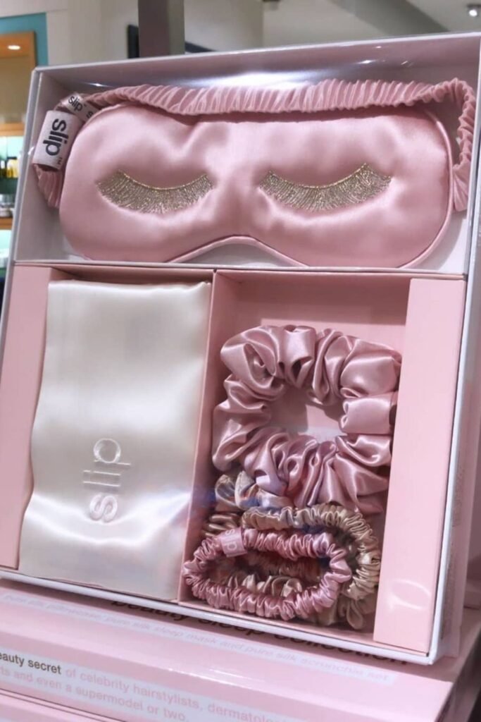 Less friction means fewer tangles and softer skin by morning. Travel tip: pack the mask and scrunchie in your carry-on.