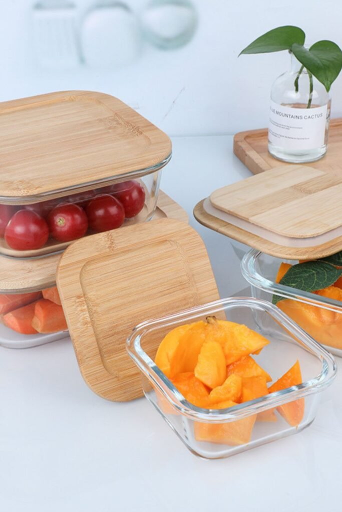 Plastic containers stain, warp, and never look clean. Glass fixes that problem instantly. Clear glass food containers with bamboo lids make your fridge look organized without trying.