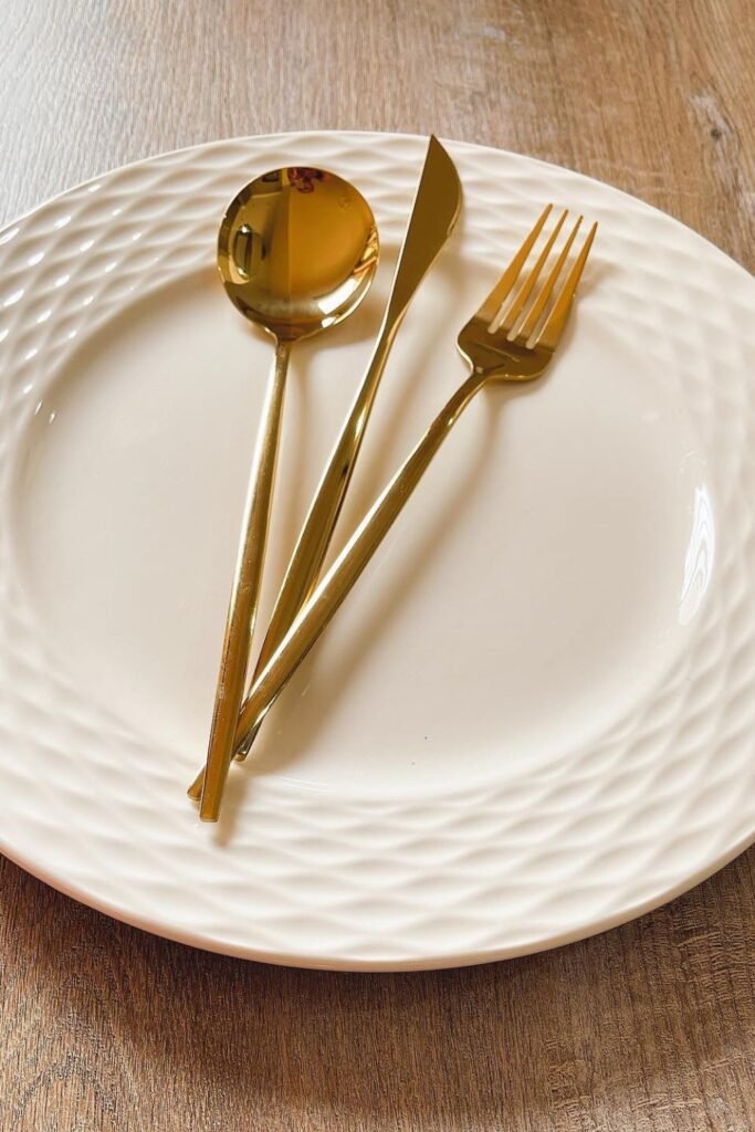 Dinner feels different when your table looks intentional. Gold flatware against a clean white plate instantly.