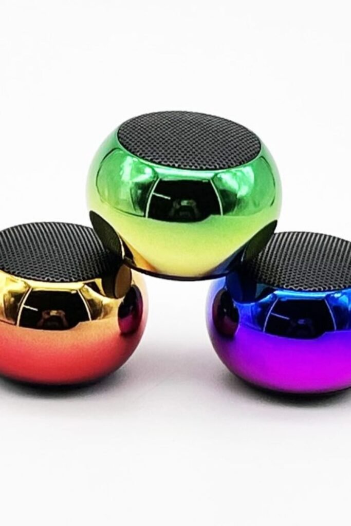 Dull tech blends in. Chrome grabs attention. Small metallic Bluetooth speakers like these double as decor.