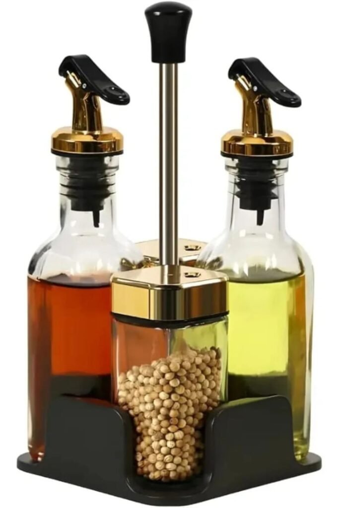 Cooking feels messy when bottles roll around your counter. A simple dispenser set keeps everything in one clean spot.